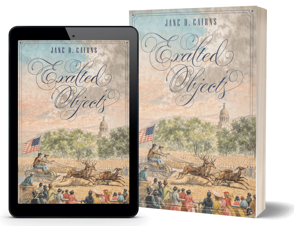 Jane D. Cairns is a Massachusetts-based writer and grassroots local historian. She is an active member of GrubStreet in Boston and a graduate of its highly selective Novel Incubator program. An alumna of Smith College, she has worked as a columnist and researcher for numerous trade magazines, including Publishers Weekly and Library Journal. Currently, she serves as a board member of the Andover (Mass.) Center for History and Culture, where she speaks and writes on popular topics in social and economic history. When she isn’t reading or writing, you can likely find her hiking with her husband on regional trail systems, riding her class-1 e-bike, or chasing critters out of her organic vegetable garden. Exalted Objects is her debut novel.